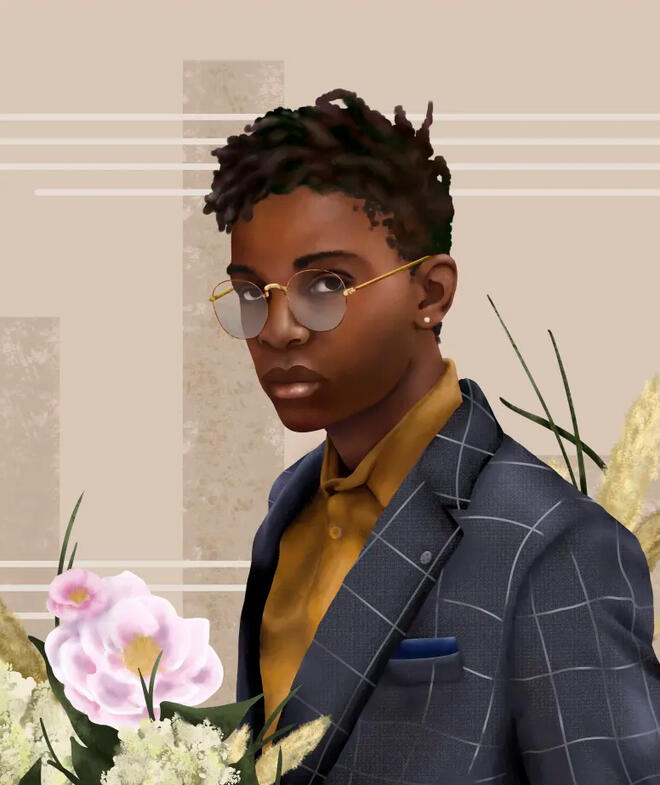 One character in a rendered style. Can be full body or bust. Simple backgrounds only. Up to 1 prop